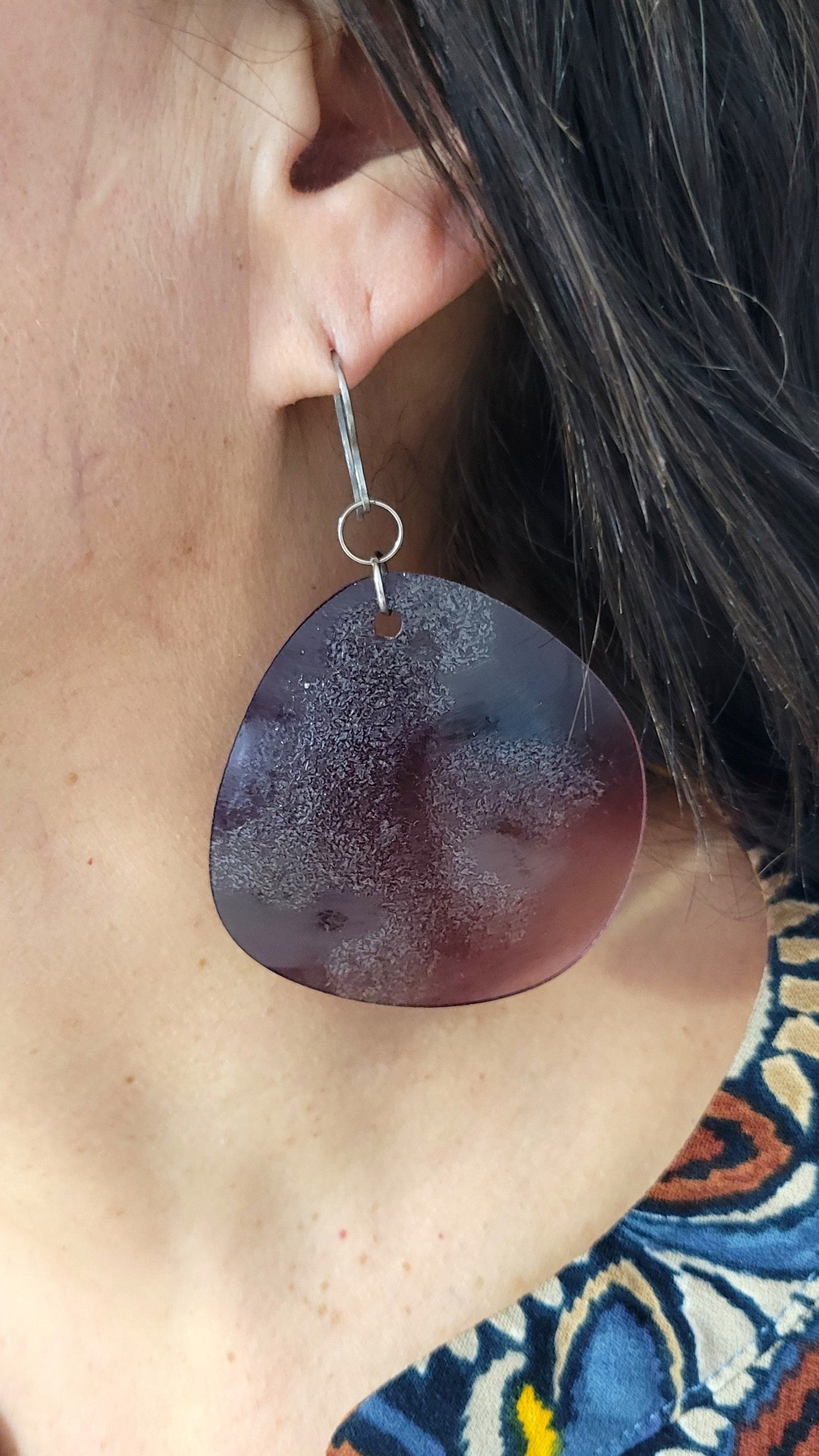 Dans mon atelier dans la région de Lanaudière à Joliette, je transforme chaque pièce à partir de lunettes de seconde main que je défais morceau par morceau. Les verres de lunettes plastifiés sont transformés à chaud pour augmenter la coloration de la matière. Les lunettes sont triées, nettoyées, façonnées, poncées et assemblées. Chaque pièce est légère et unique, et peut légèrement varier de la photo. Mes bijoux captent la lumière et changent de couleurs selon leur orientation. Les montures, les branches, les plaquettes, les manchons, les verres, les charnières sont métalliques ou plastifiées et recyclées. Les chaînes, tiges, crochets, dormeuses, breloques et apprêts sont en acier inoxydable et à l'état neuf ainsi que les pierres fines.