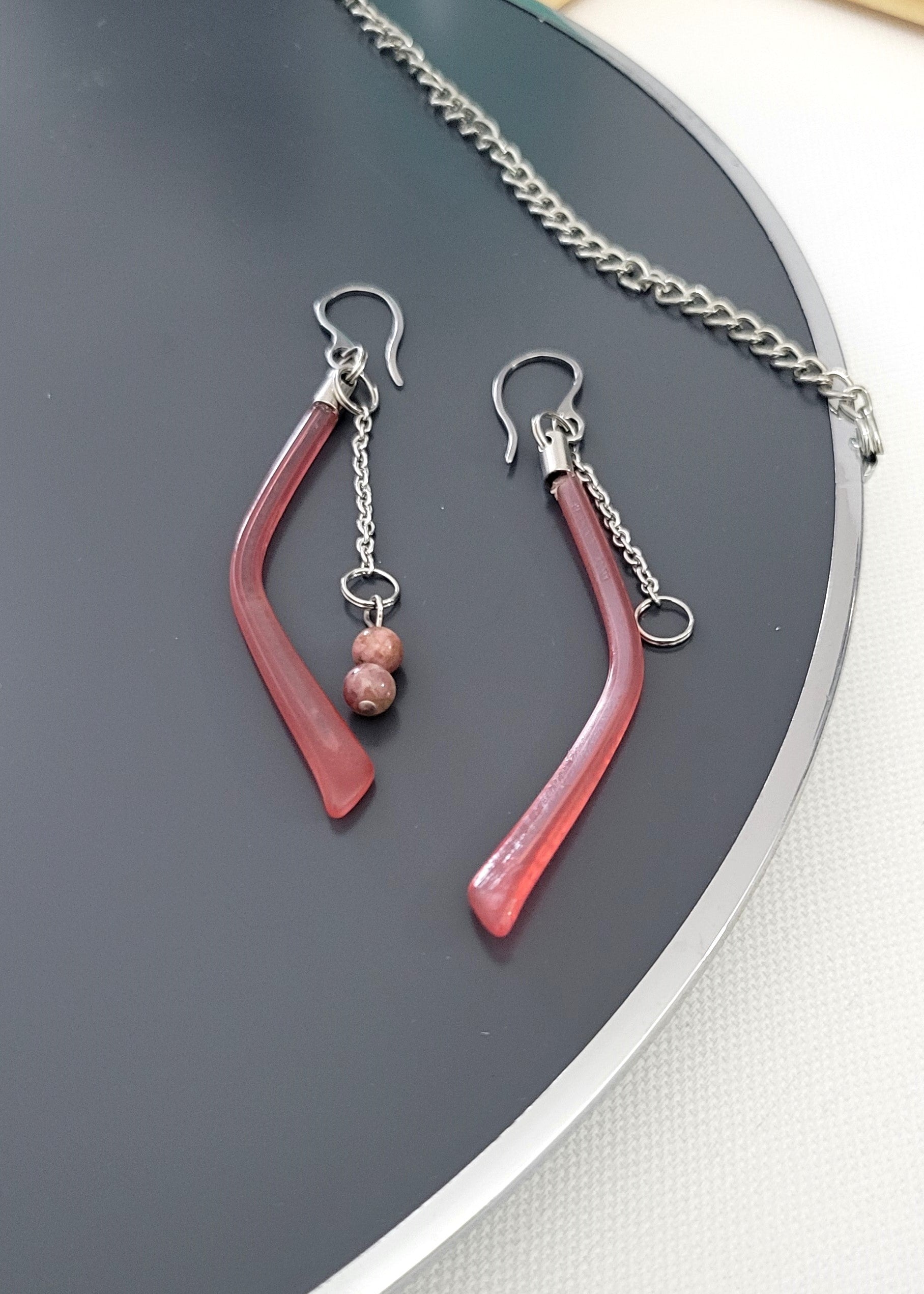 Colliers, boucles d'oreilles et bracelets uniques en harmonie avec votre style : classique, minimaliste, recyclé ou maximaliste. Chaque pièce est parfaite pour un cadeau spécial. Vous trouverez certainement le bijou qui s'agencera parfaitement à votre style. Je vous invite à venir découvrir mes bijoux faits à la main avec PASSION, remplis d'intentions et de signification. De plus, vous recevrez un message secret personnel pour vous inspirer et recharger votre énergie. Choisissez le bijou qui reflète votre âme et votre histoire. Chaque pièce est unique et conçu avec des lunettes de seconde main afin de diminuer notre impact écologique. Une façon colorée de vous démarquer !
