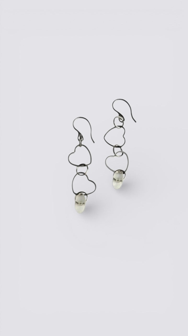 Dans mon atelier dans la région de Lanaudière à Joliette, je transforme chaque pièce à partir de lunettes de seconde main que je défais morceau par morceau. Les verres de lunettes plastifiés sont transformés à chaud pour augmenter la coloration de la matière. Les lunettes sont triées, nettoyées, façonnées, poncées et assemblées. Chaque pièce est légère et unique, et peut légèrement varier de la photo. Mes bijoux captent la lumière et changent de couleurs selon leur orientation. Les montures, les branches, les plaquettes, les manchons, les verres, les charnières sont métalliques ou plastifiées et recyclées. Les chaînes, tiges, crochets, dormeuses, breloques et apprêts sont en acier inoxydable et à l'état neuf ainsi que les pierres fines.
